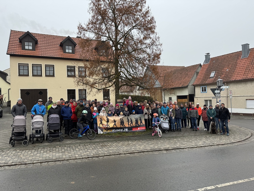 Nach der Begrüßung durch den 2. Bürgermeister Frank Eckert sowie Eberhard Helm, Initiator der Dorfrunden, setzten sich alle gemeinsam eine Stunde in Bewegung.