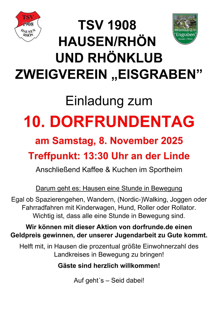 | Samstag, 8. November, 13.30 Uhr | 10. Dorfrundentag (gemeinsam mit Rhönklub) |